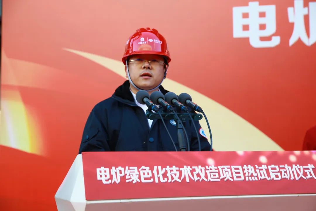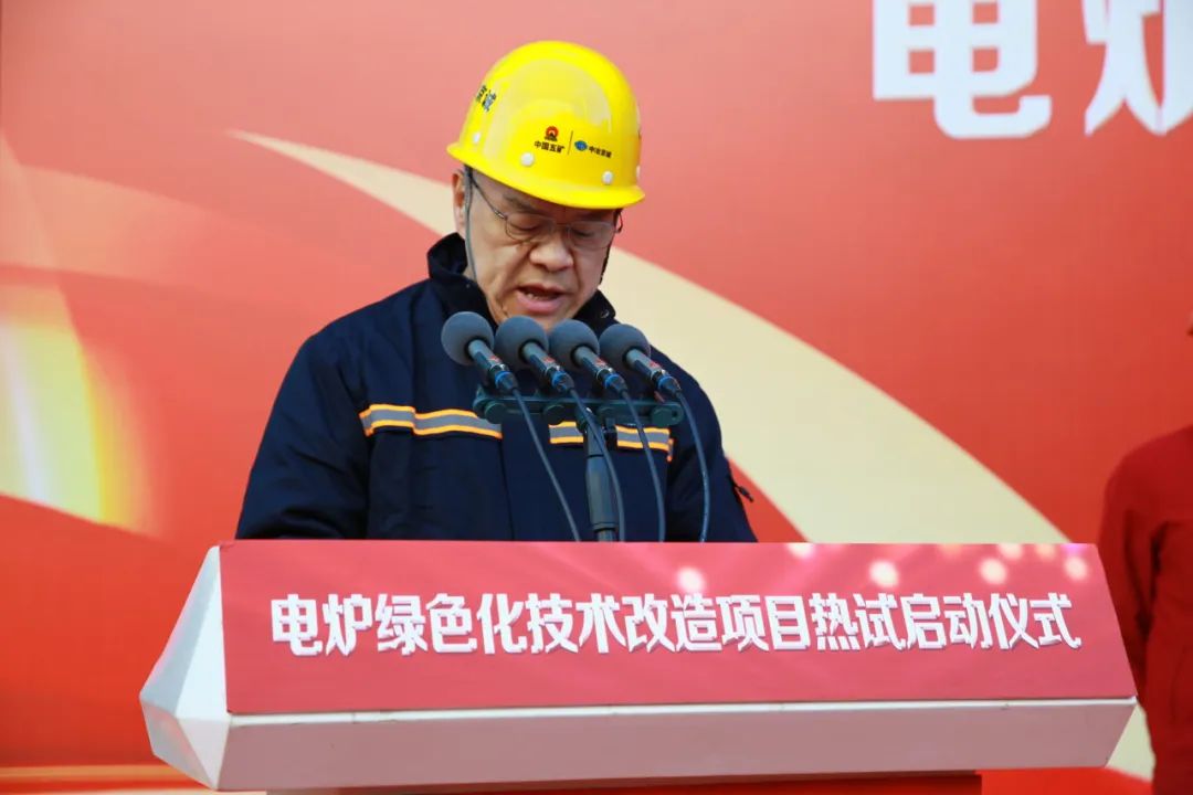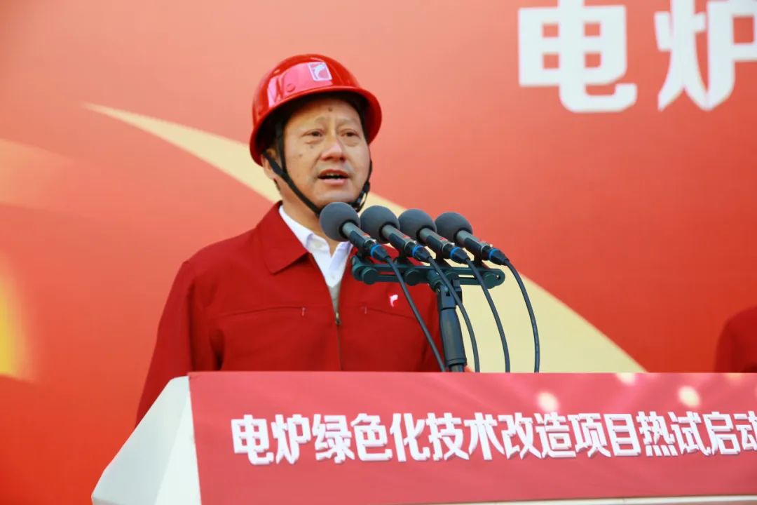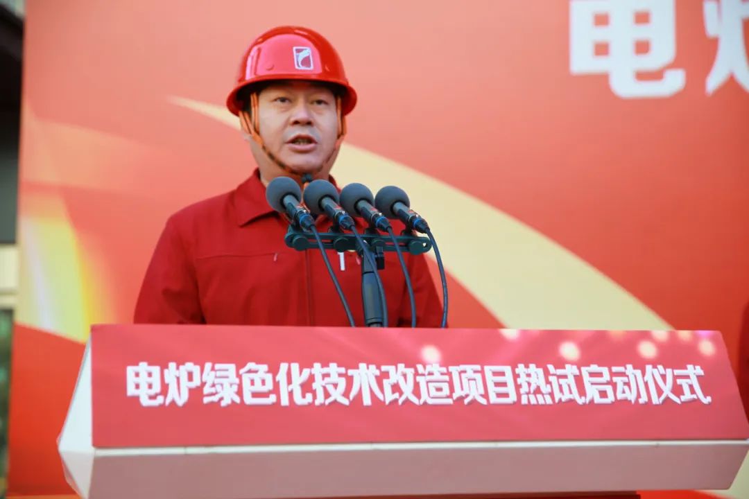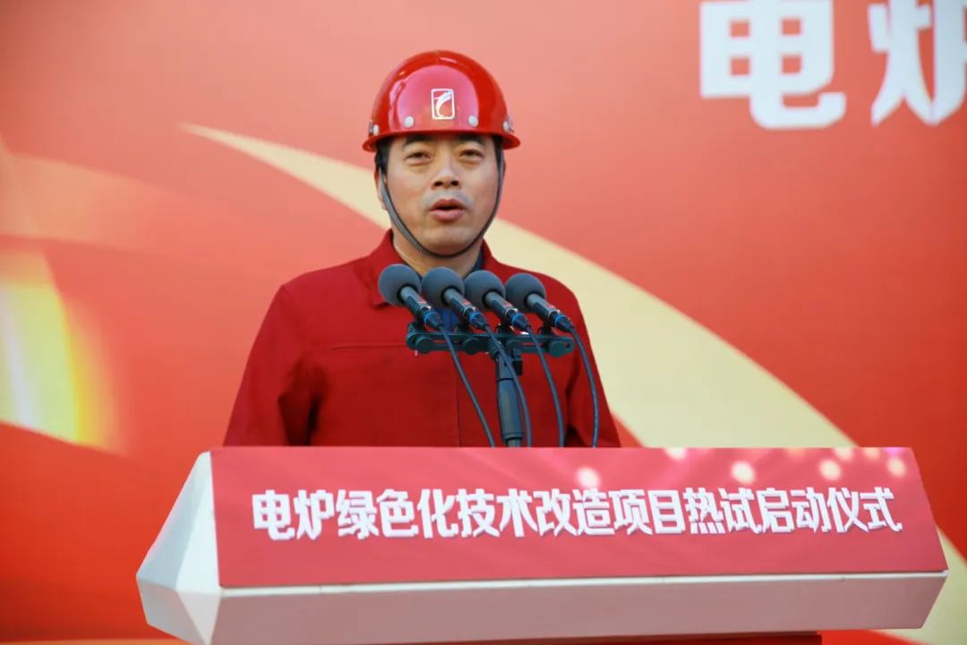 呂紀永為儀式致辭,他表示,電爐綠色化技術改造項目代表了公司實施綠色低碳高質量發(fā)展的決心。新電爐建設采用了最先進的水平加料,最成熟的工藝路線,最前沿的電爐+真空澆筑,實施最嚴格的超低排放標準,該項目的投產(chǎn)可以降低煤耗8萬多噸,助力企業(yè)加快轉型升級和結構調(diào)整,必將成為引領企業(yè)實施綠色低碳高質量發(fā)展的一面旗幟。