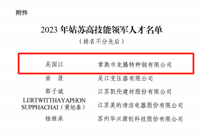 江蘇龍騰特鋼集團(tuán)有限公司燒結(jié)廠吳國江榮列其中,成為常熟市首位獲評(píng)此項(xiàng)榮譽(yù)的人才!