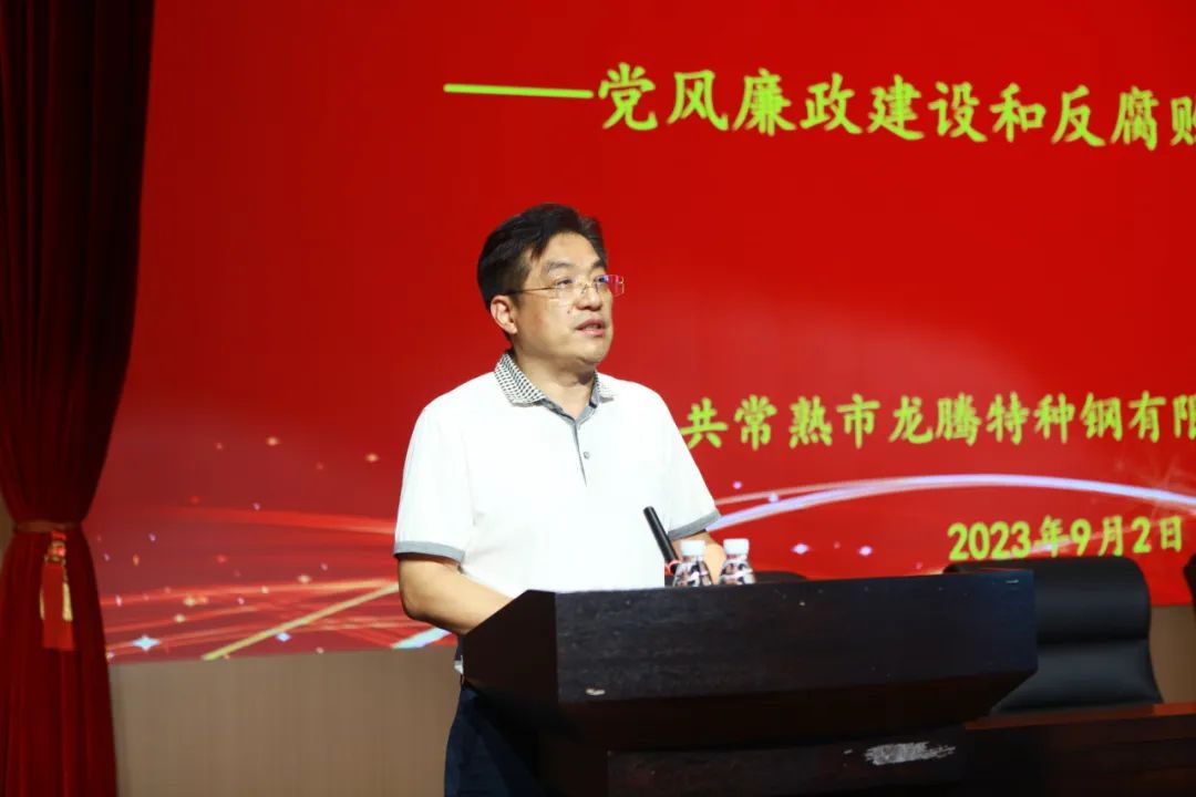 為進(jìn)一步加強(qiáng)公司各級(jí)黨員干部和關(guān)鍵崗位人員的思想作風(fēng)建設(shè),持續(xù)推動(dòng)各級(jí)黨員干部和關(guān)鍵崗位人員時(shí)刻牢記“忠誠(chéng)、干凈、擔(dān)當(dāng)、作為”的責(zé)職使命,9月2日下午龍騰特鋼特邀常熟市“碧水琴川”黨風(fēng)廉政宣講團(tuán)講師為員工進(jìn)行廉潔專題教育。