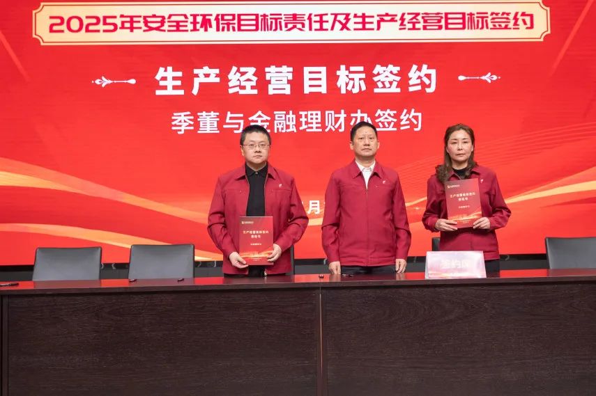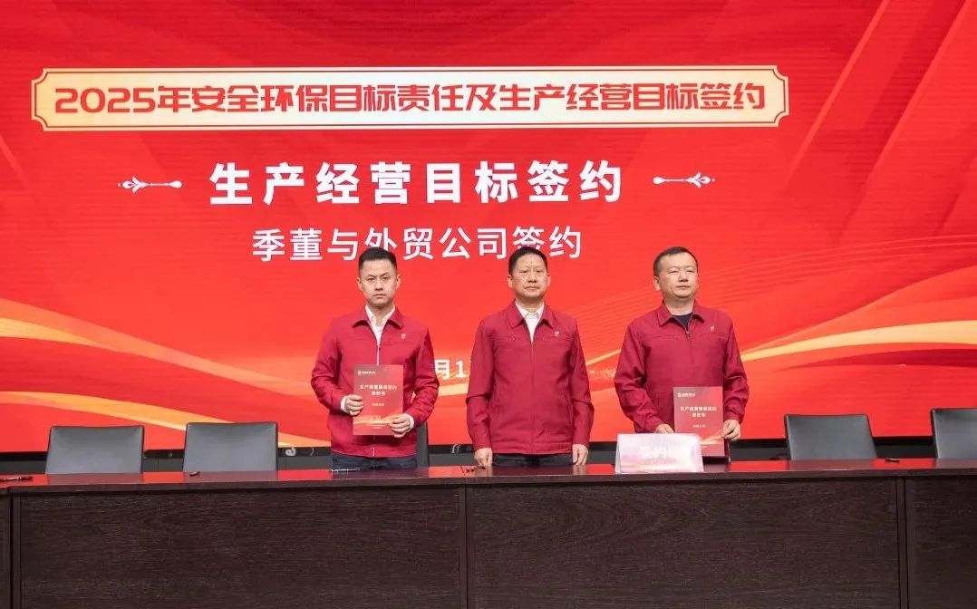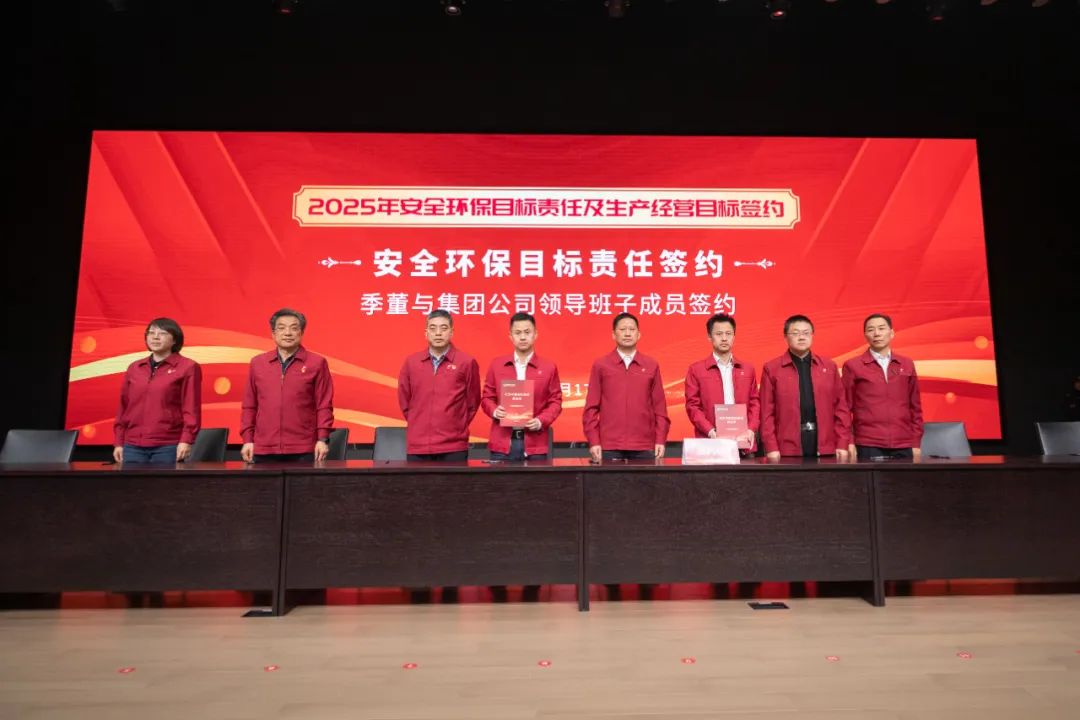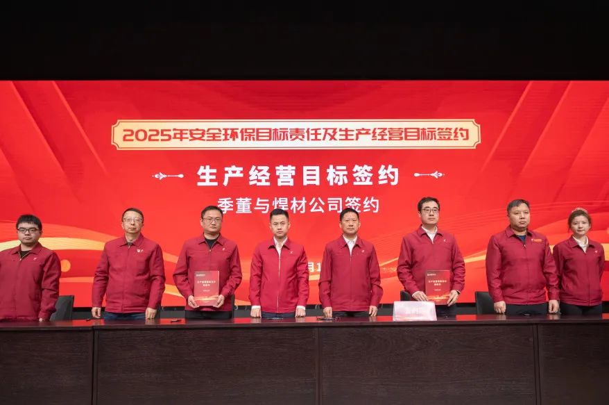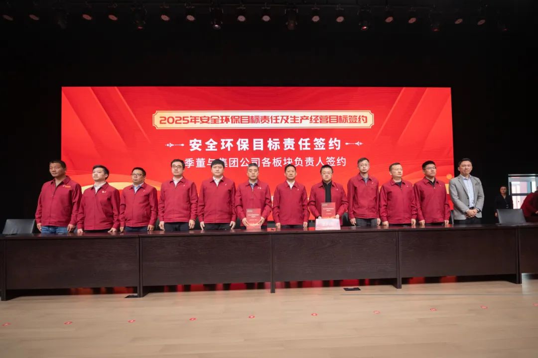 季董分別與集團公司領導班子成員、各版塊負責人及職能部門負責人進行了2025年安全環(huán)保目標責任、生產(chǎn)經(jīng)營目標的簽約。