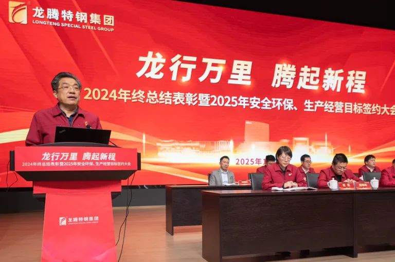 2025年1月17日,江蘇龍騰特鋼集團隆重召開2024年工作總結(jié)表彰暨2025年安全環(huán)保、生產(chǎn)經(jīng)營目標簽約大會。大會全面總結(jié)了公司2024年度取得的各項成績,表彰了工作中涌現(xiàn)出的各類先進集體(個人),并全面部署了2025年度各項目標任務。