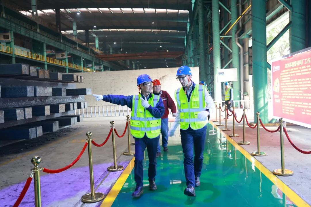參觀過程中,雙方圍繞產(chǎn)品市場布局、生產(chǎn)制造優(yōu)勢、綠色低碳發(fā)展及定制化服務能力等議題進行了深入交流。John Heasley先生對龍騰特鋼近年來取得的發(fā)展成果表示高度認可,對企業(yè)綜合實力與發(fā)展速度印象深刻。
